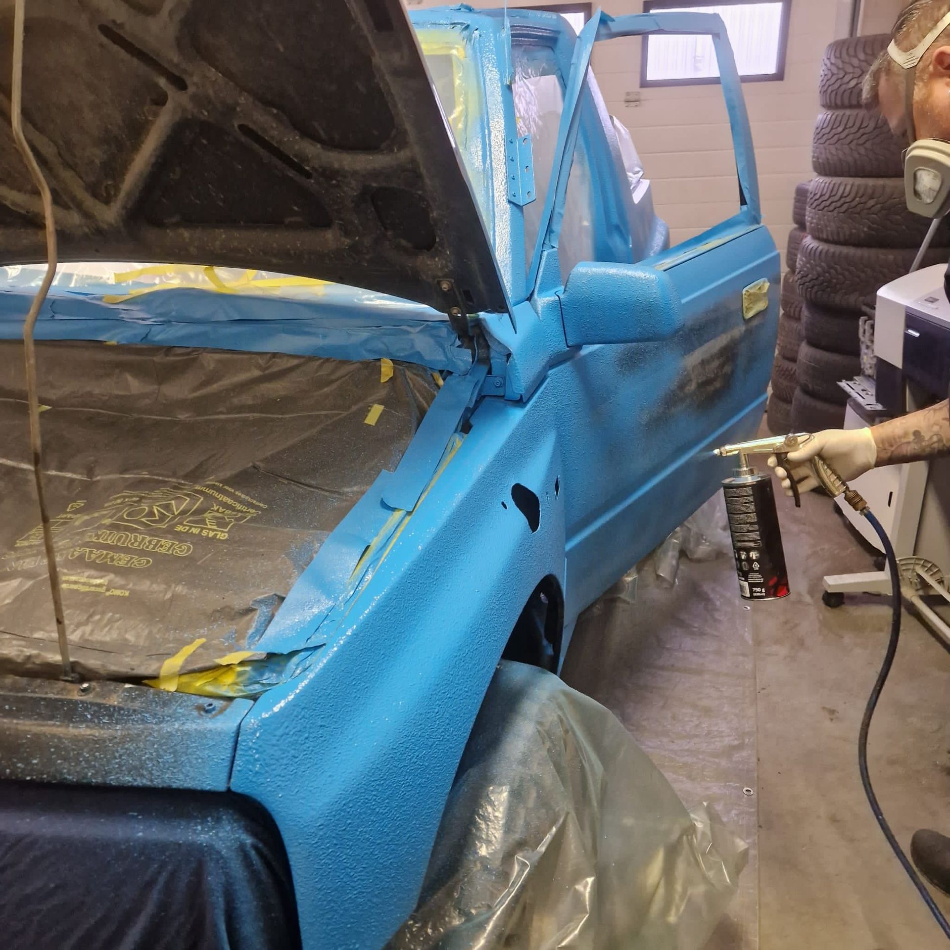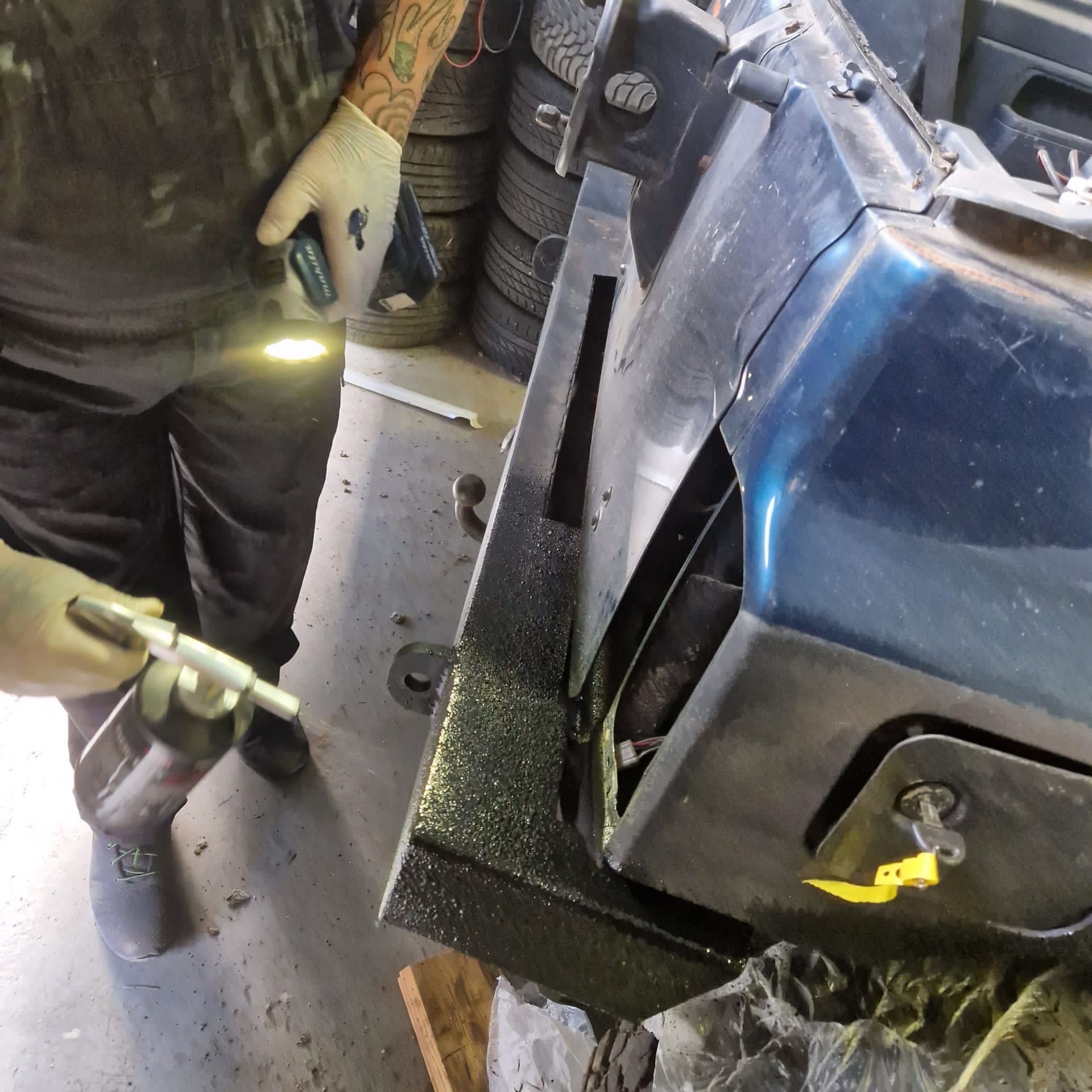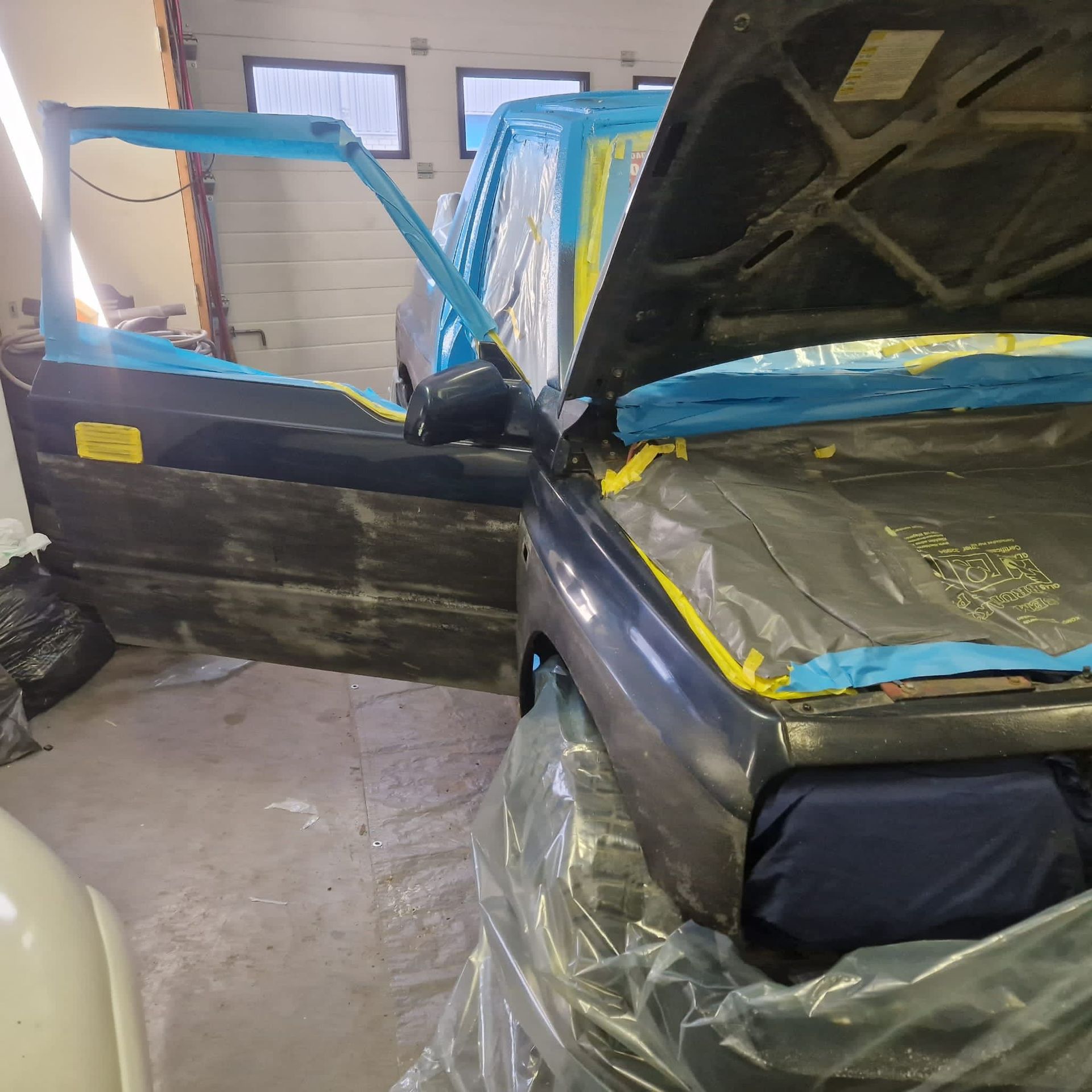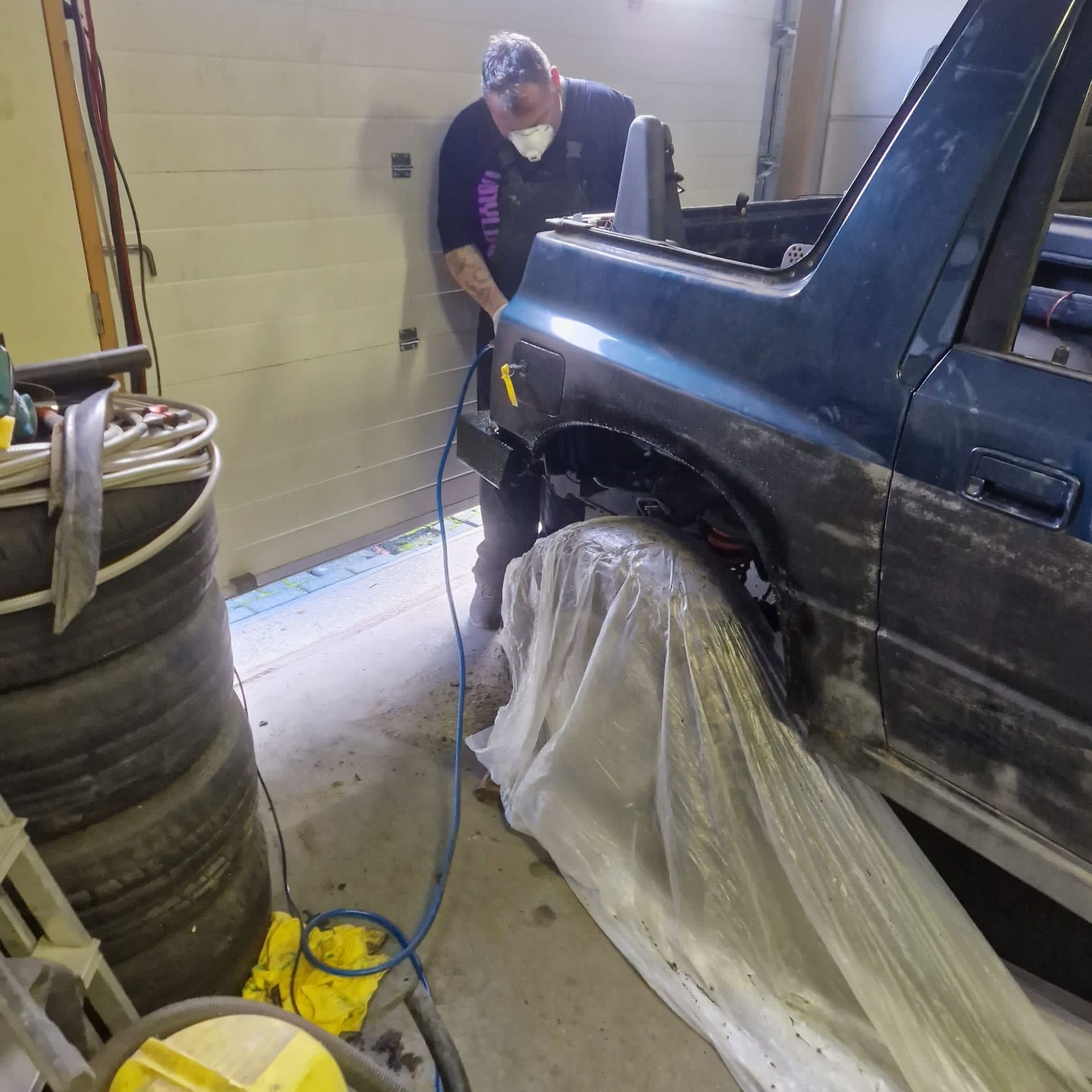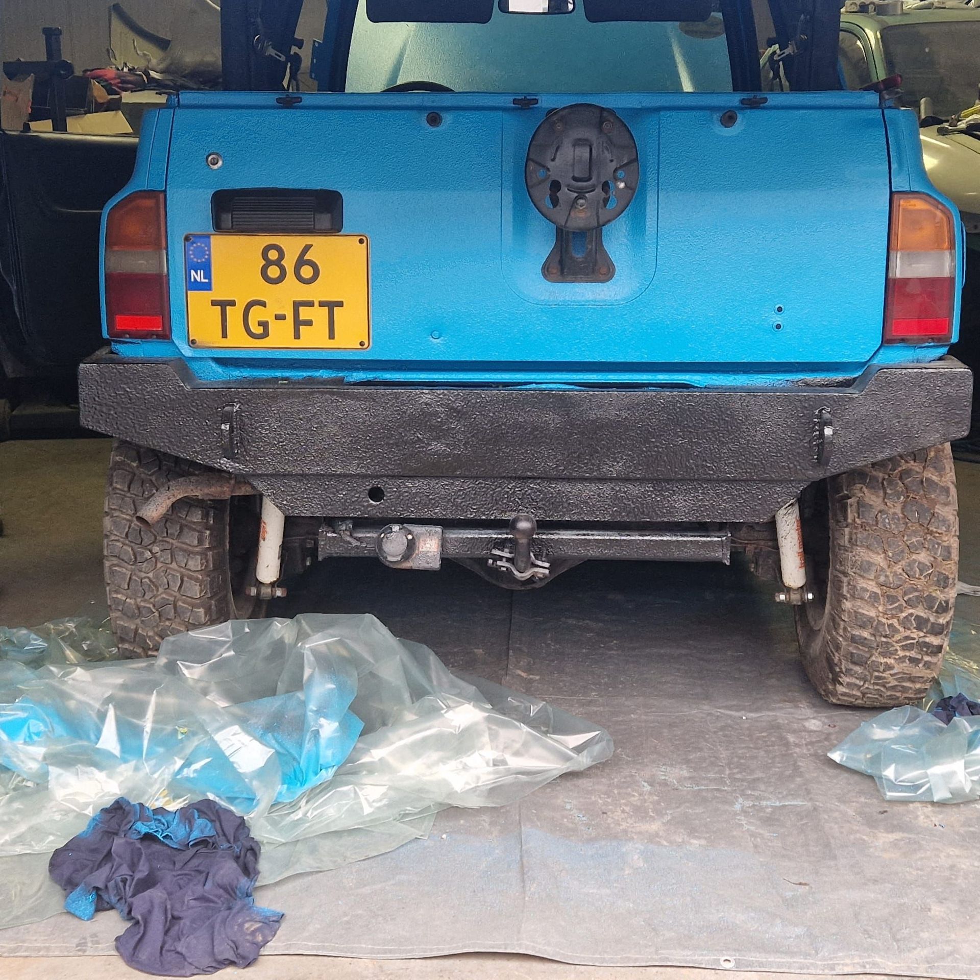 De blauwe truck bedliner komt bij