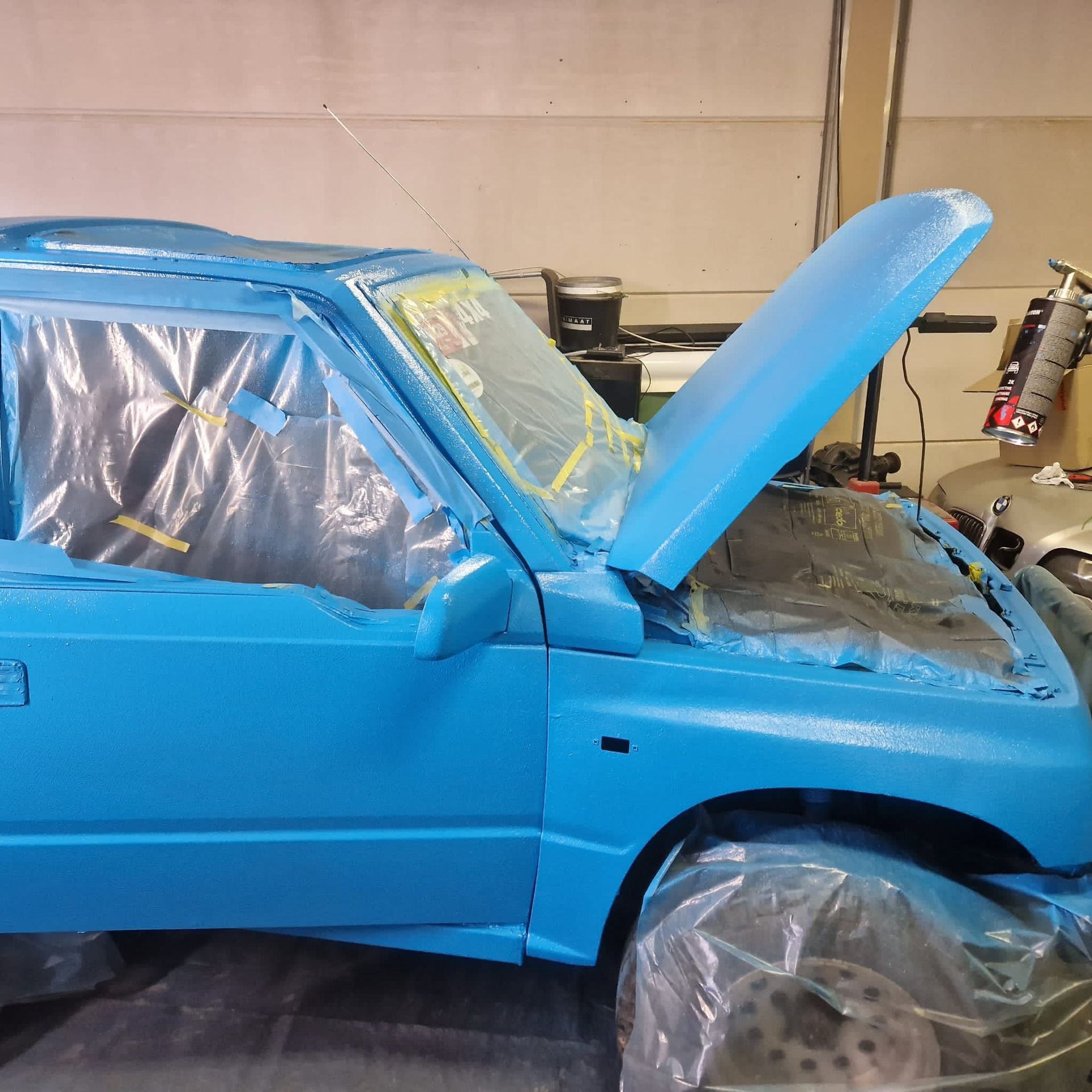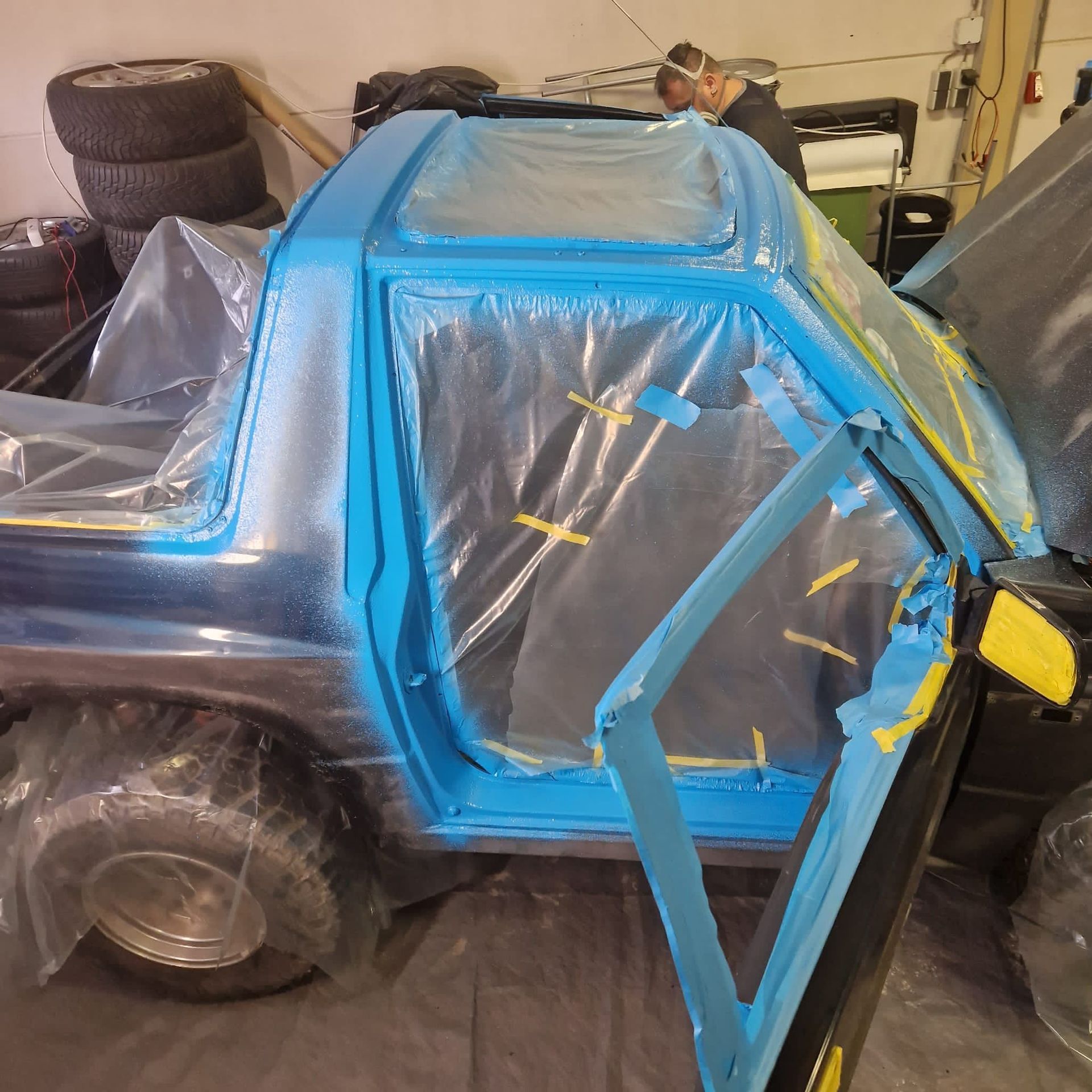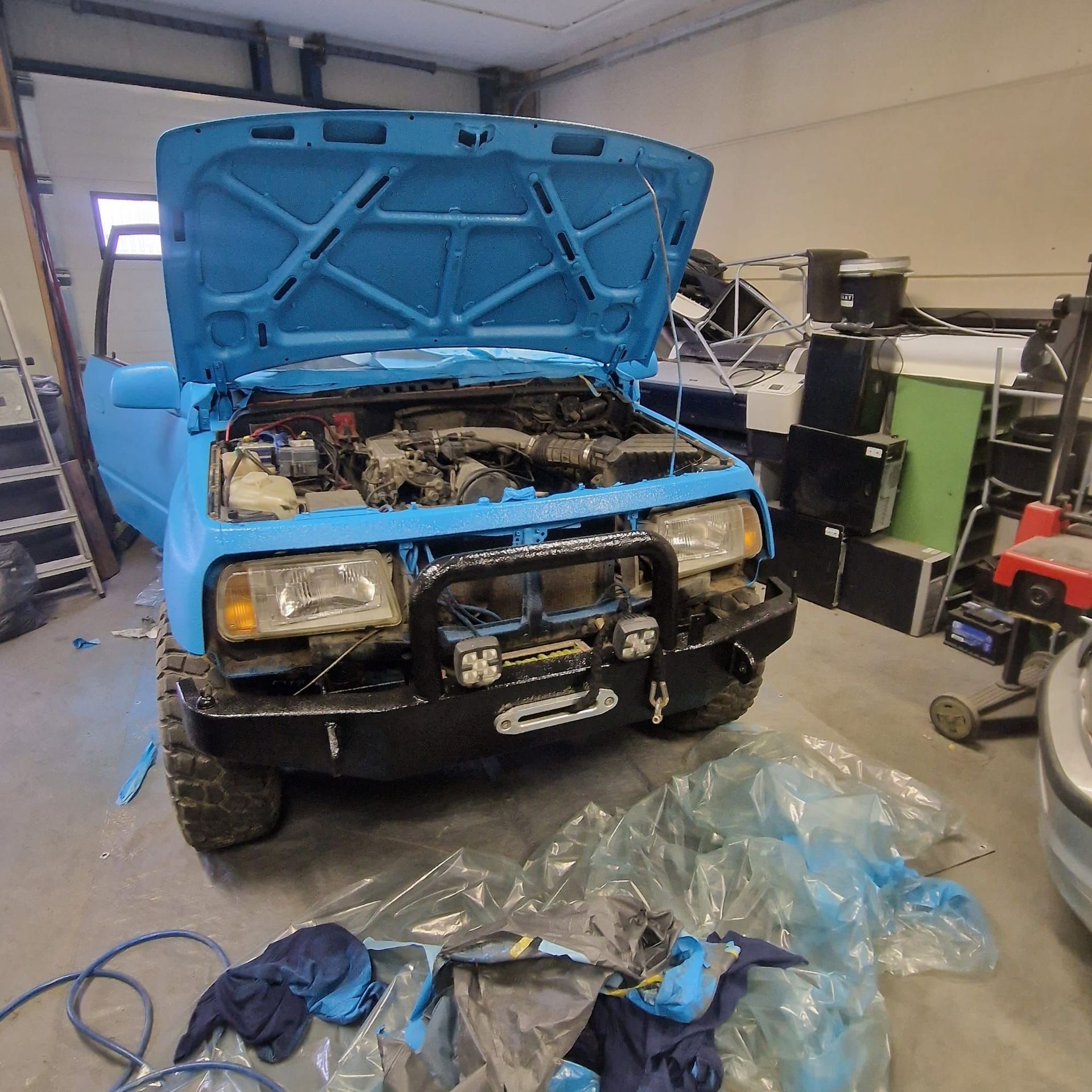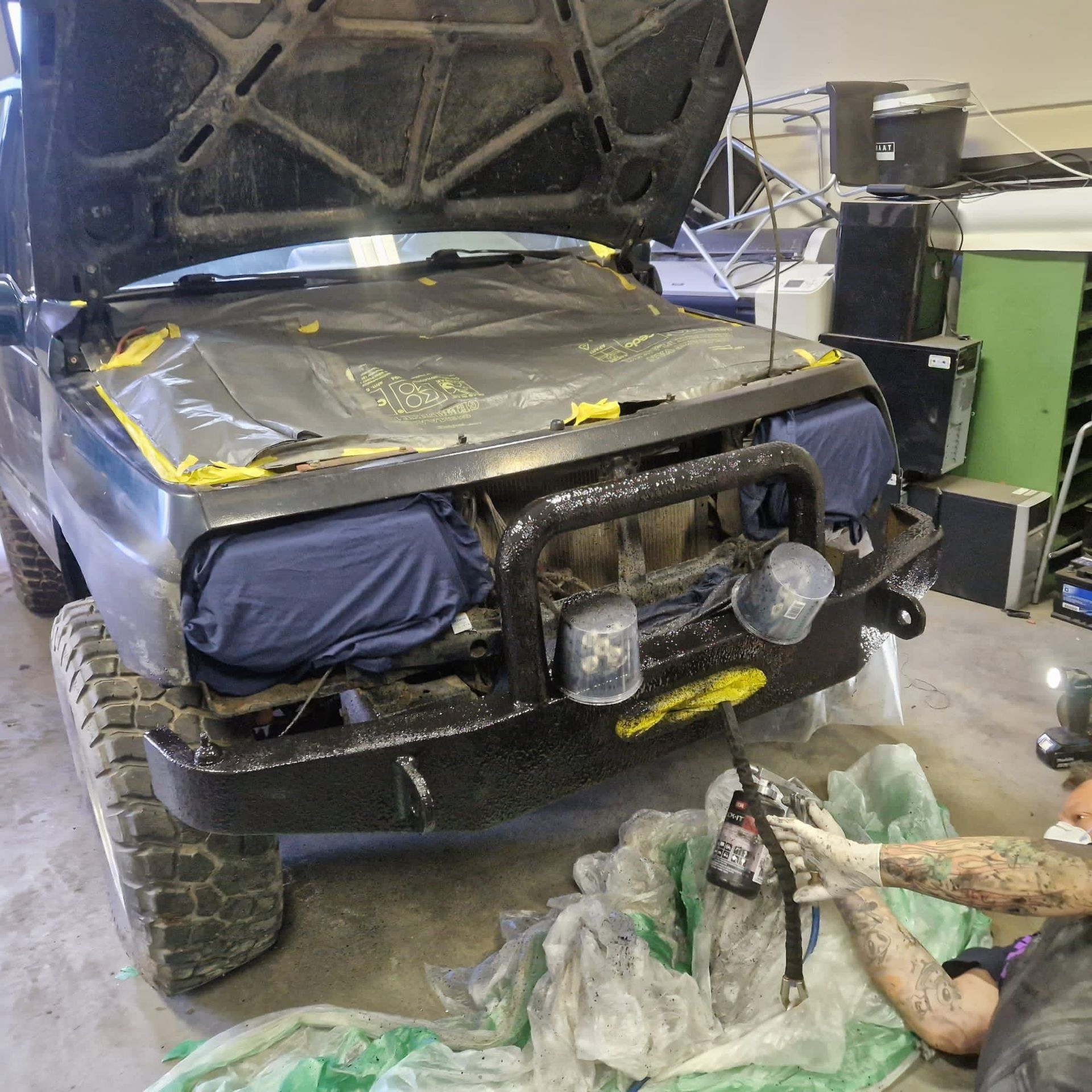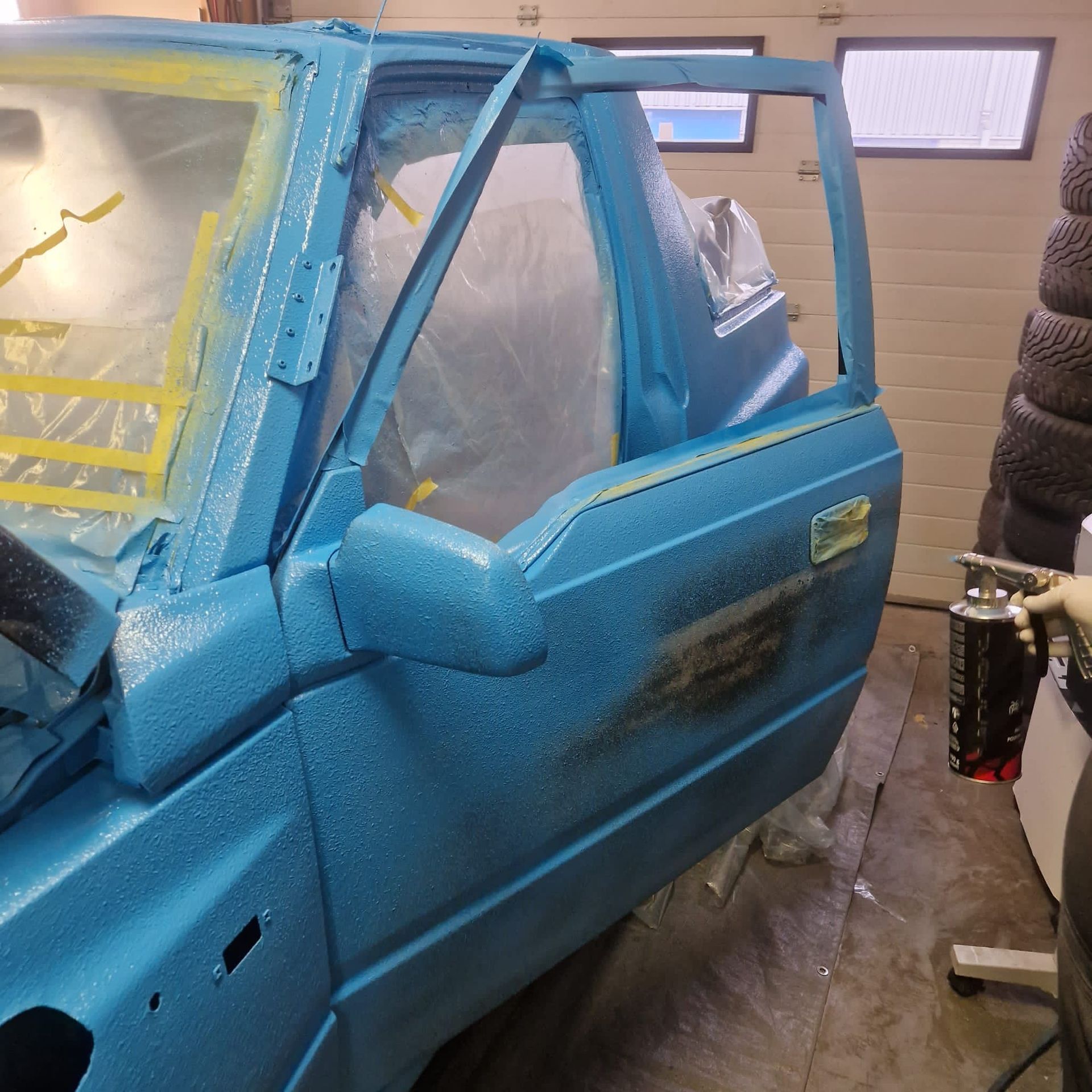 De blauwe truck bedliner komt bij