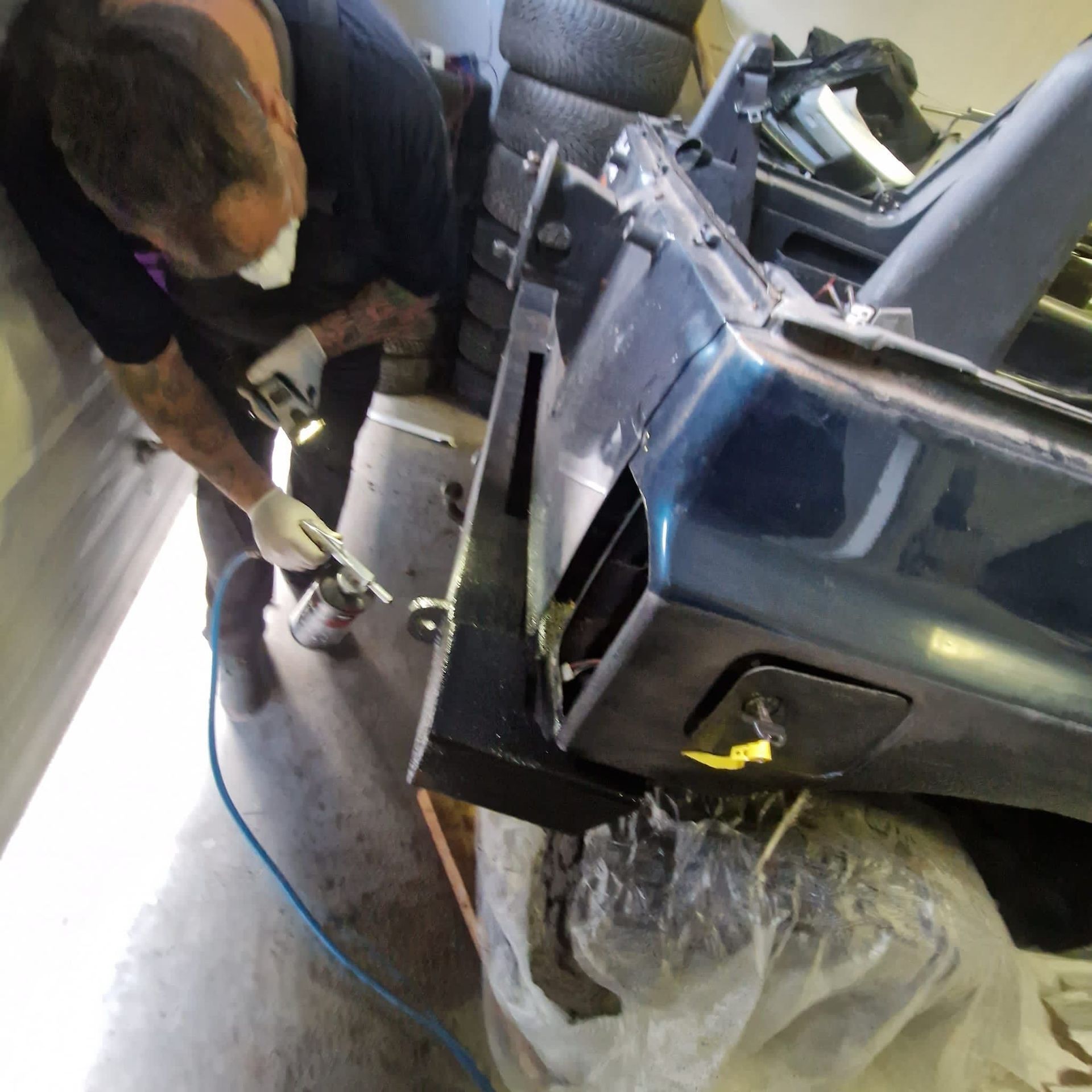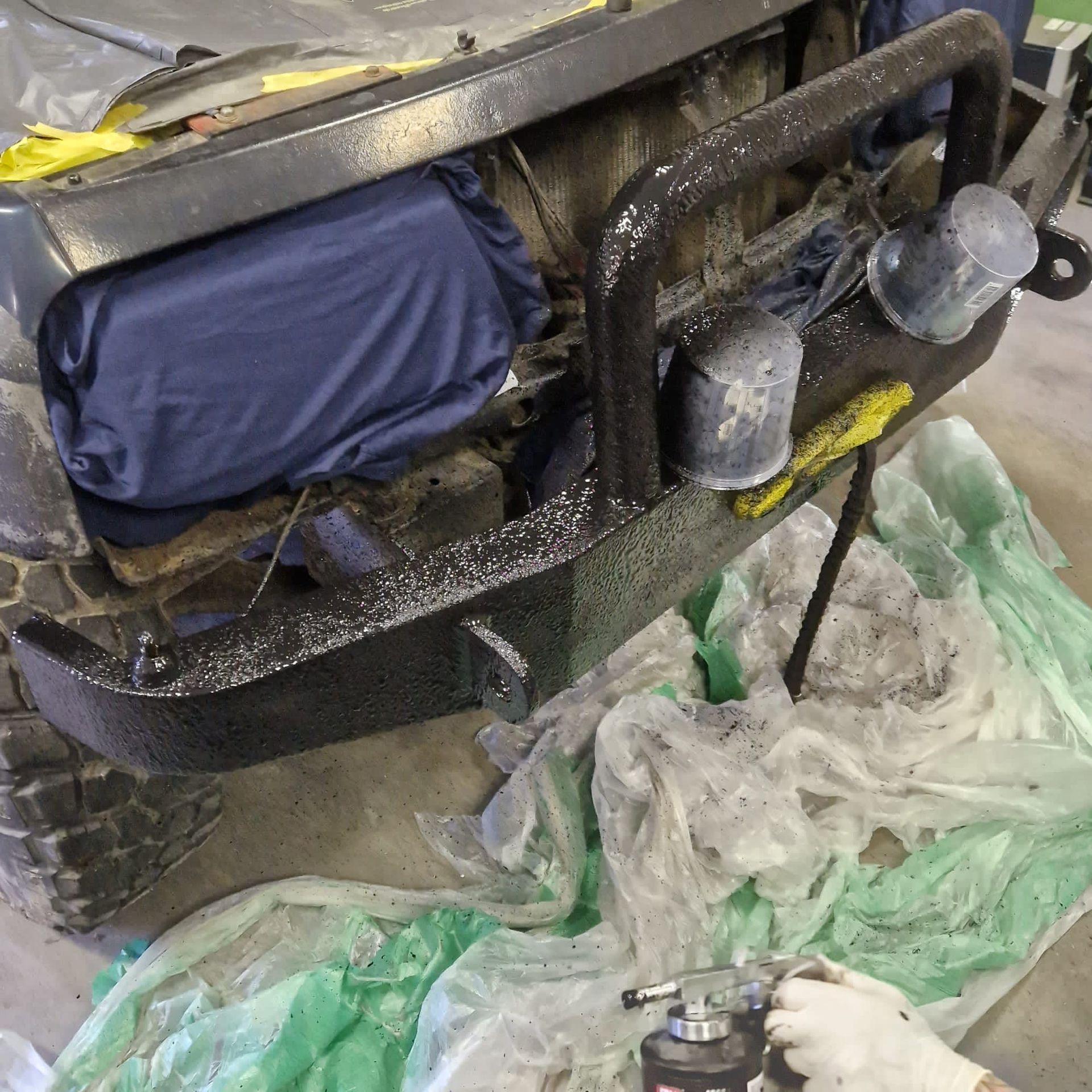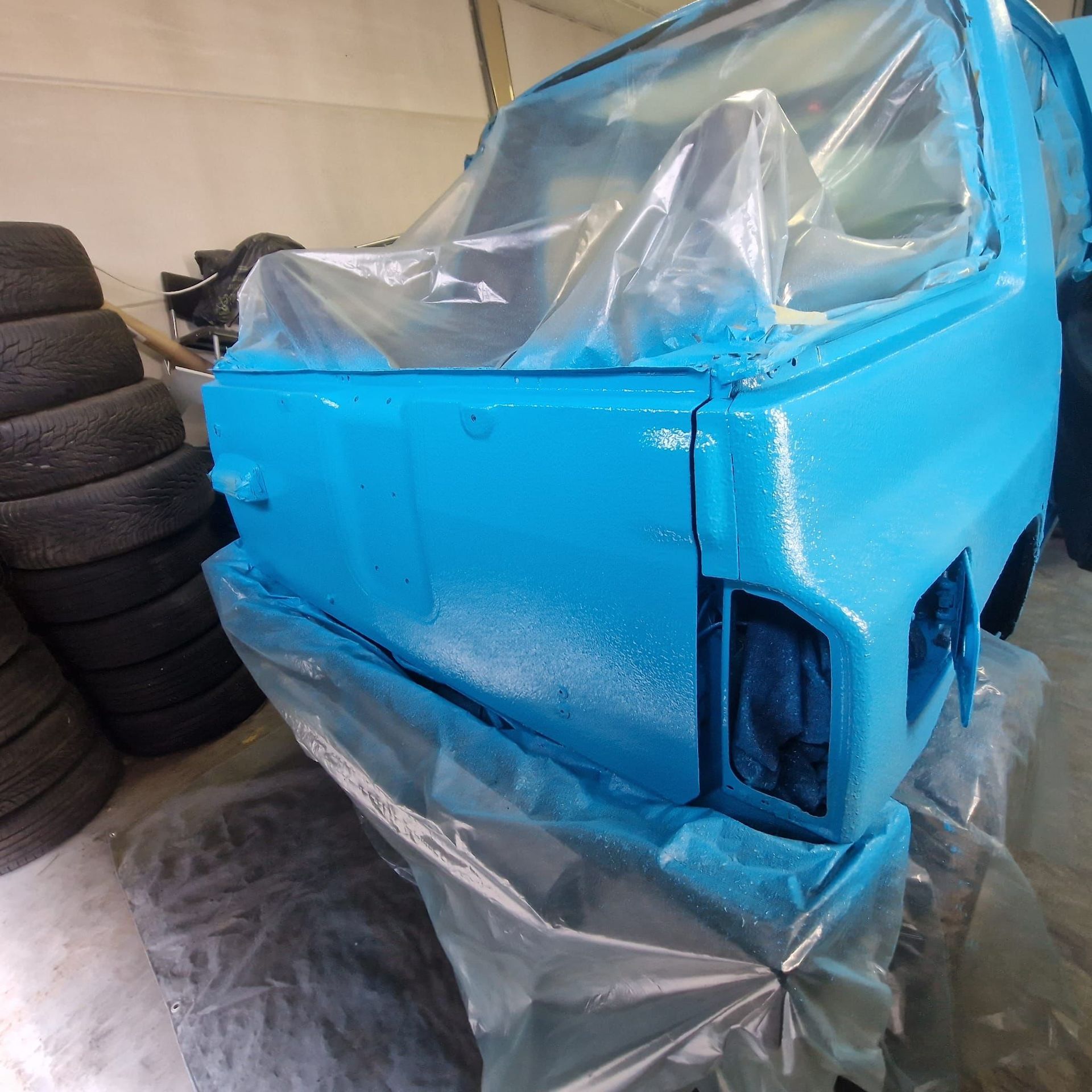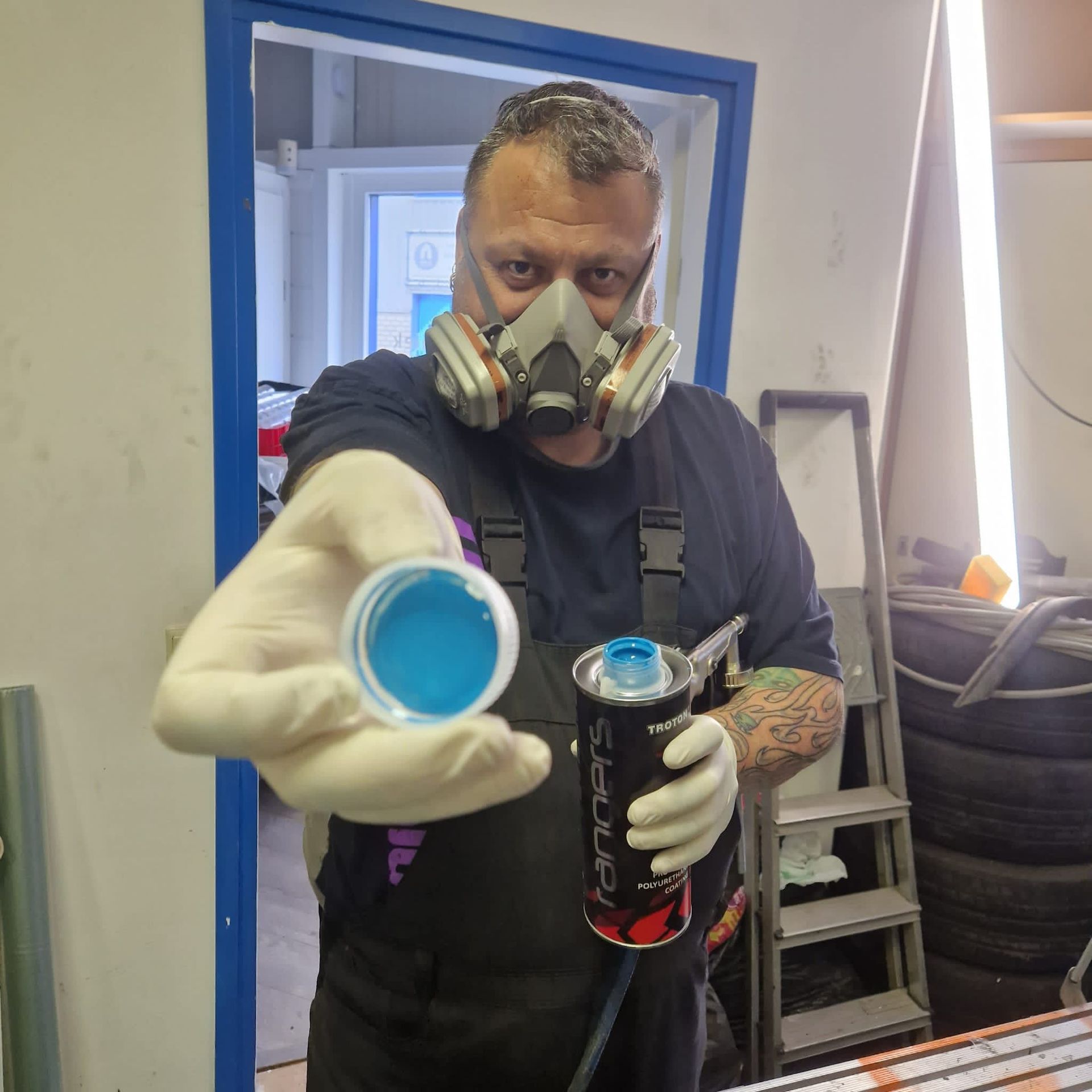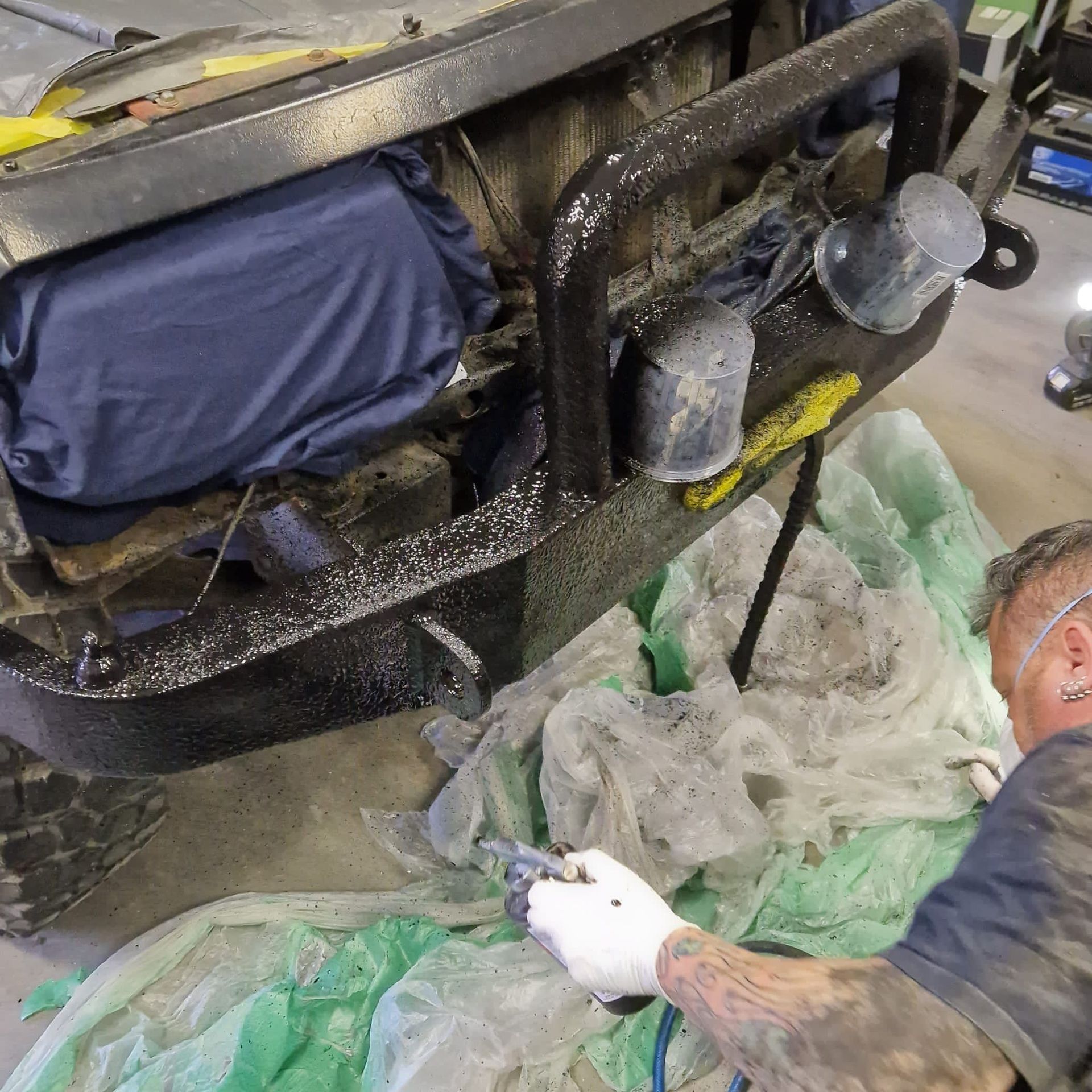 De blauwe truck bedliner komt bij