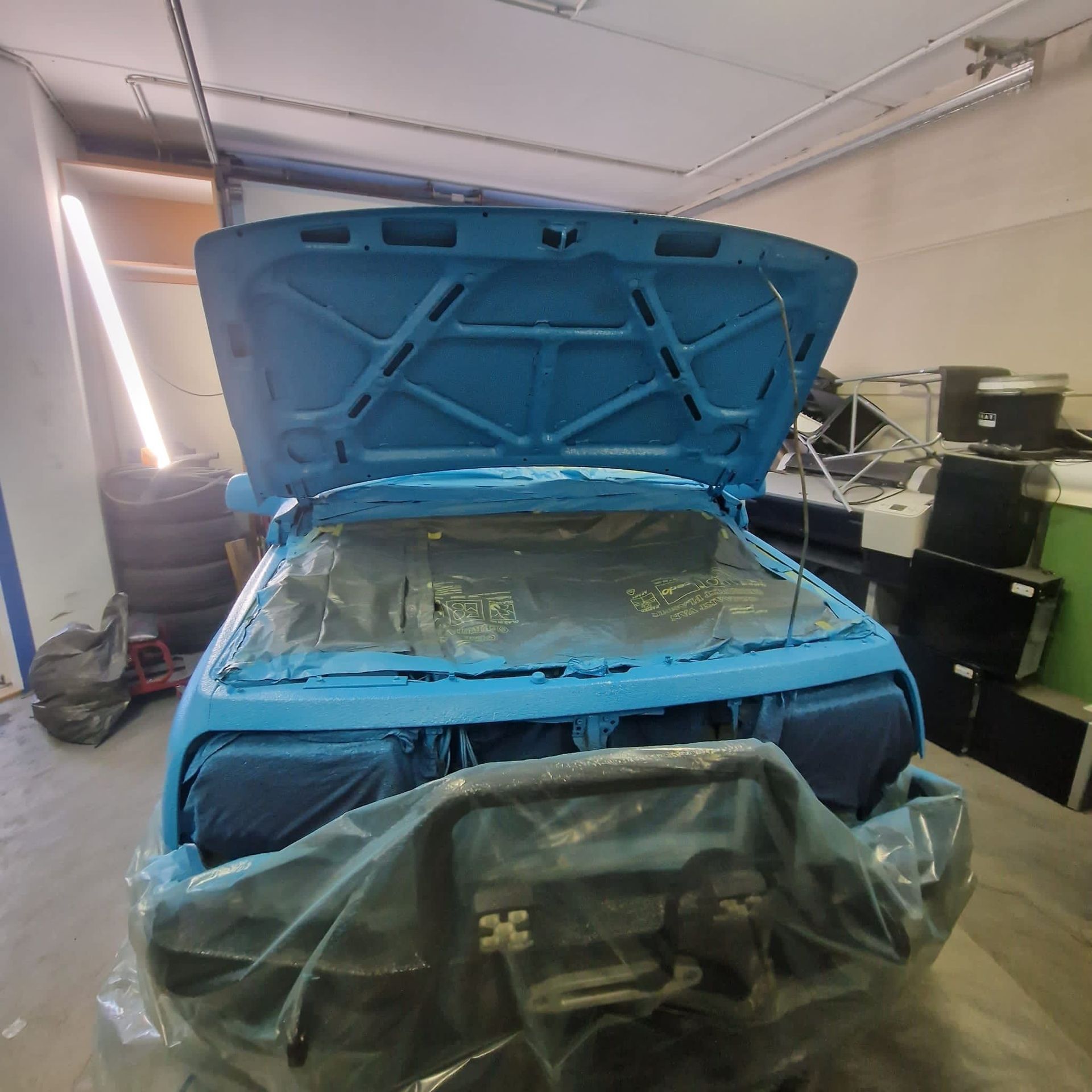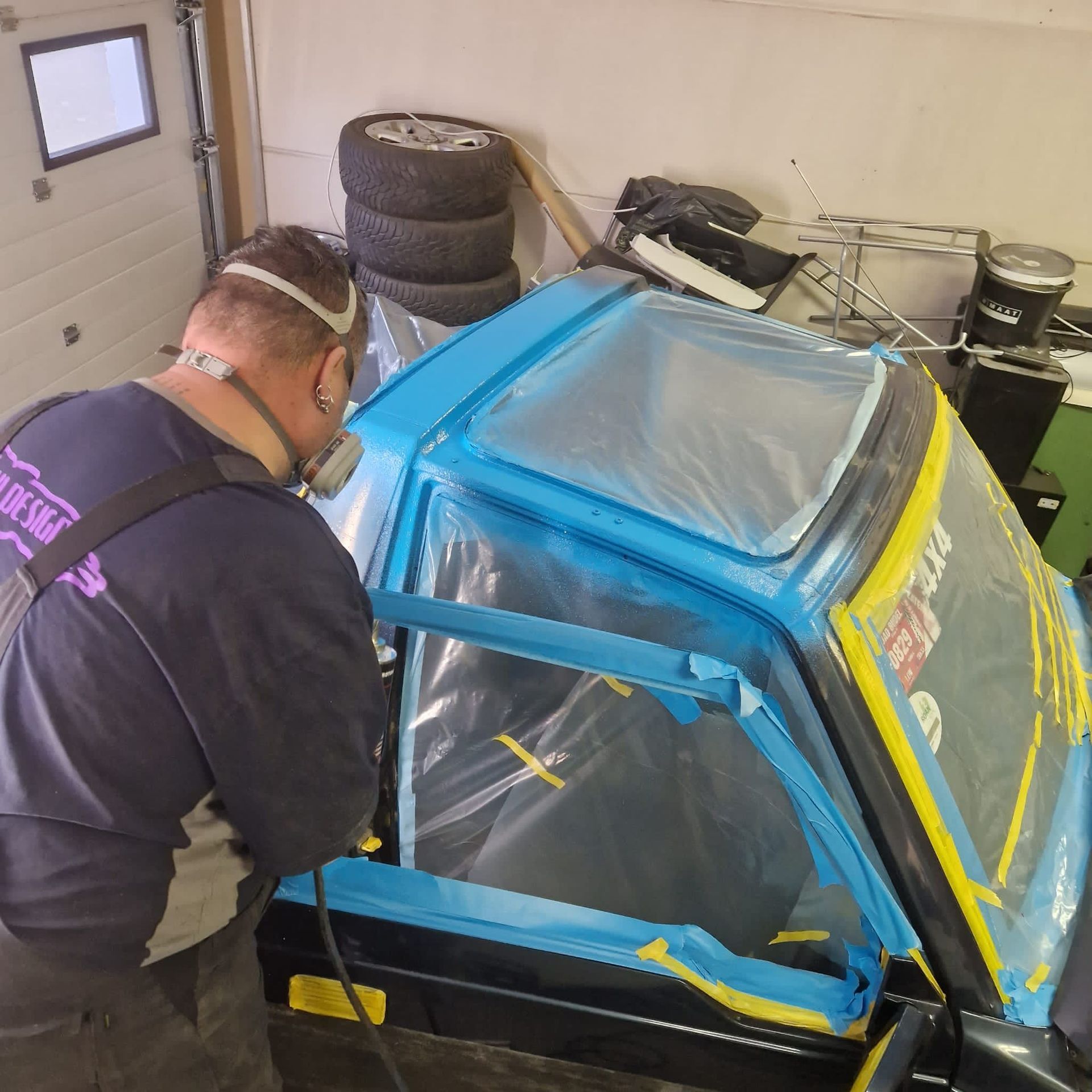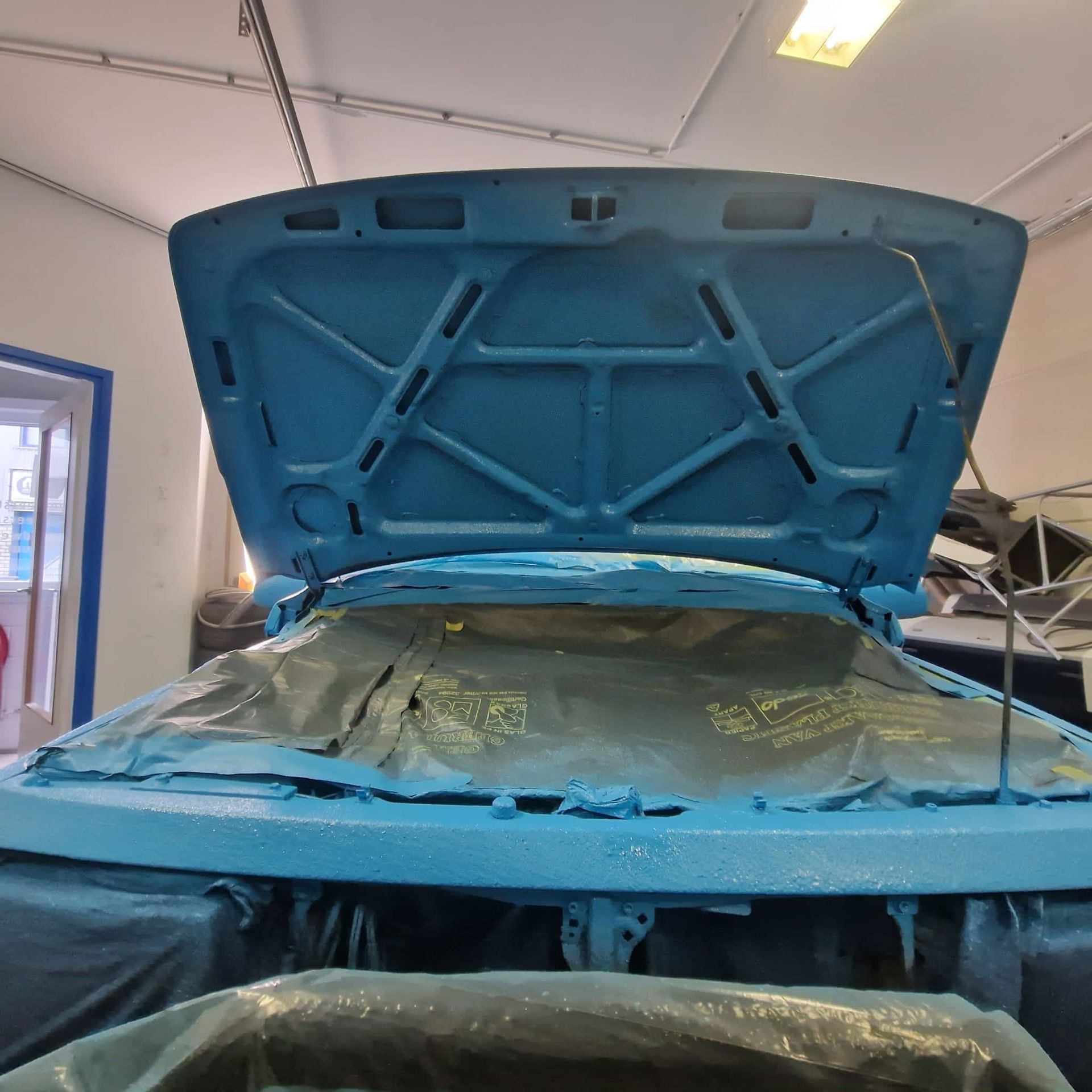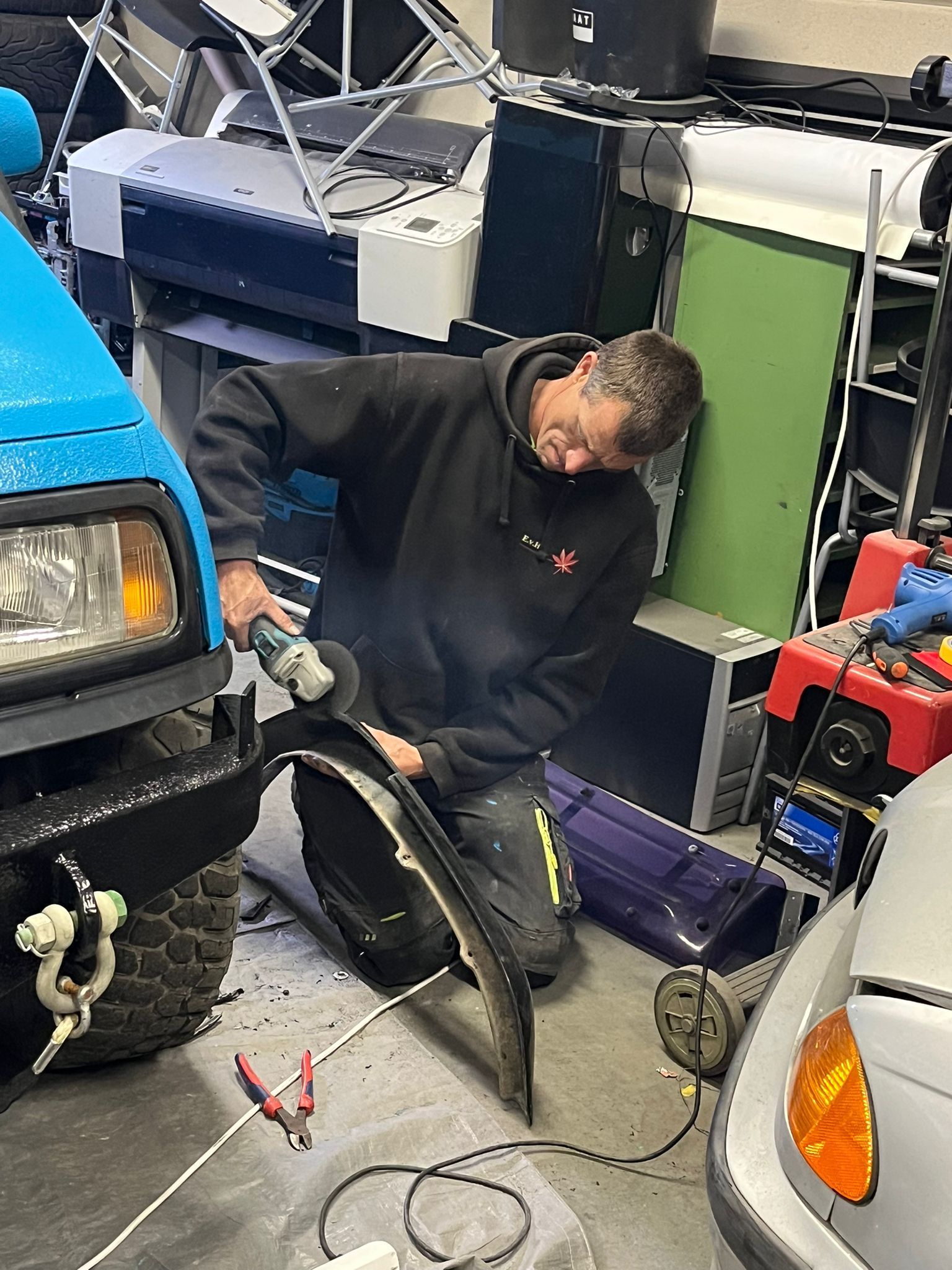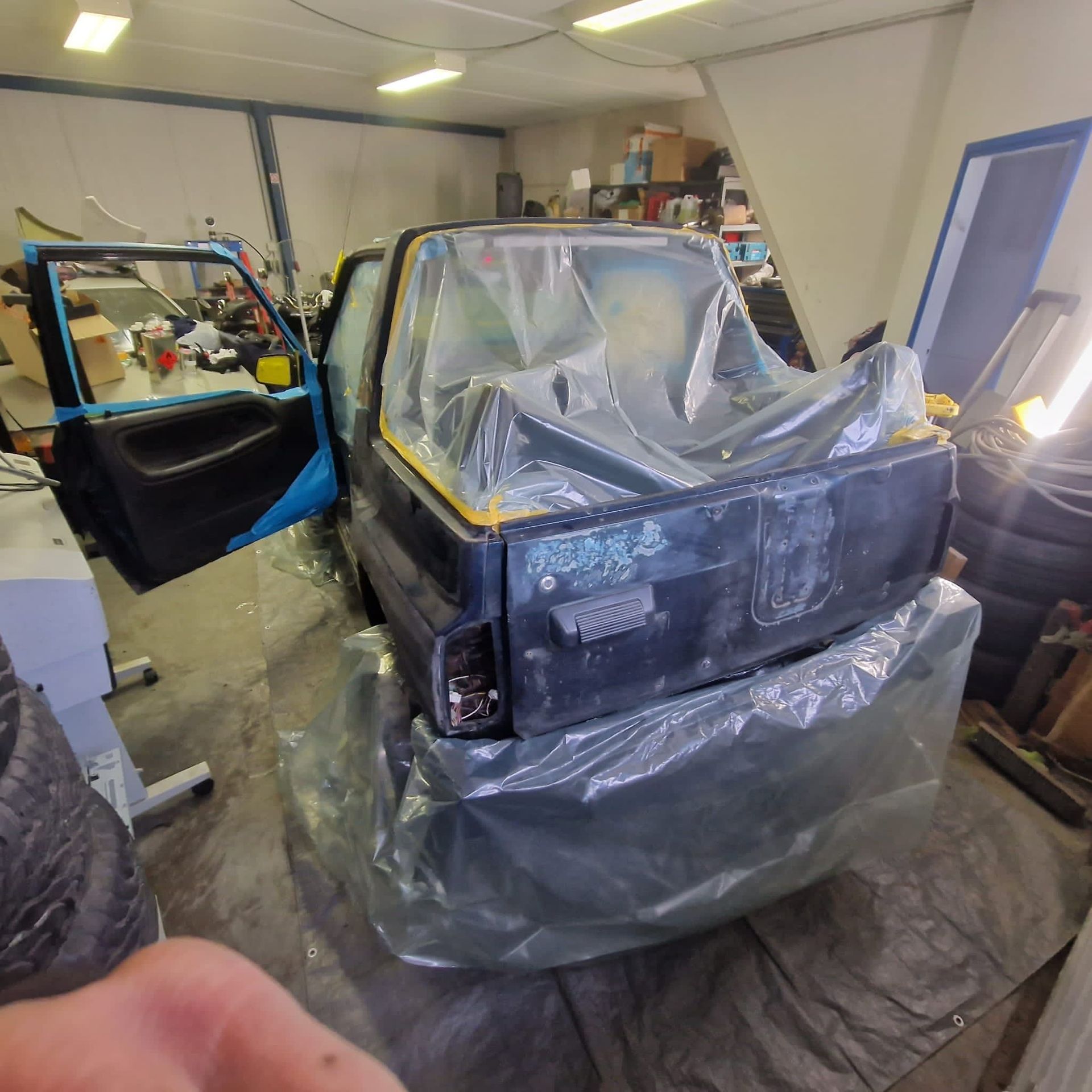 De blauwe truck bedliner komt bij