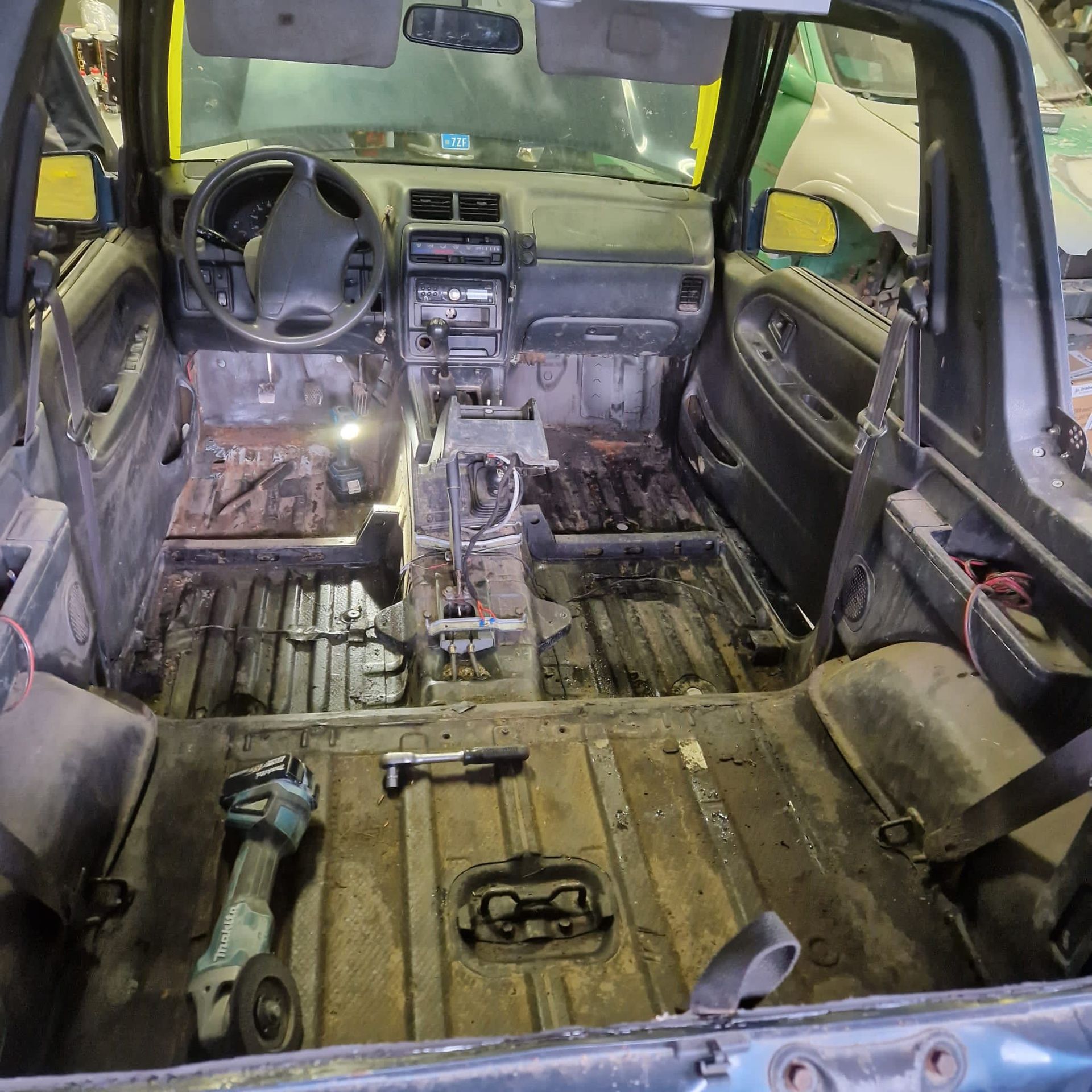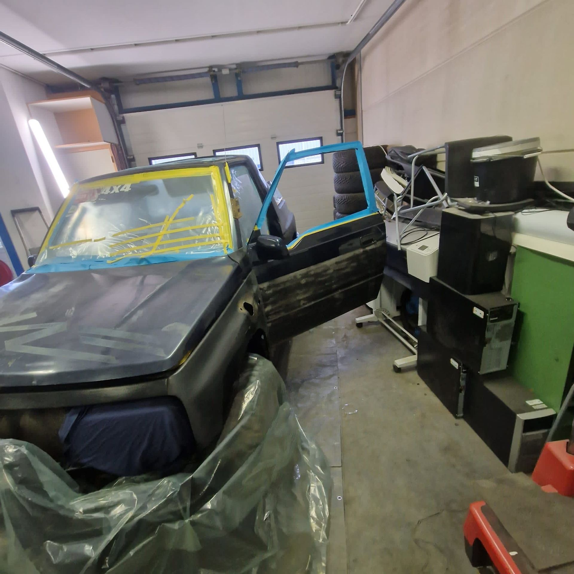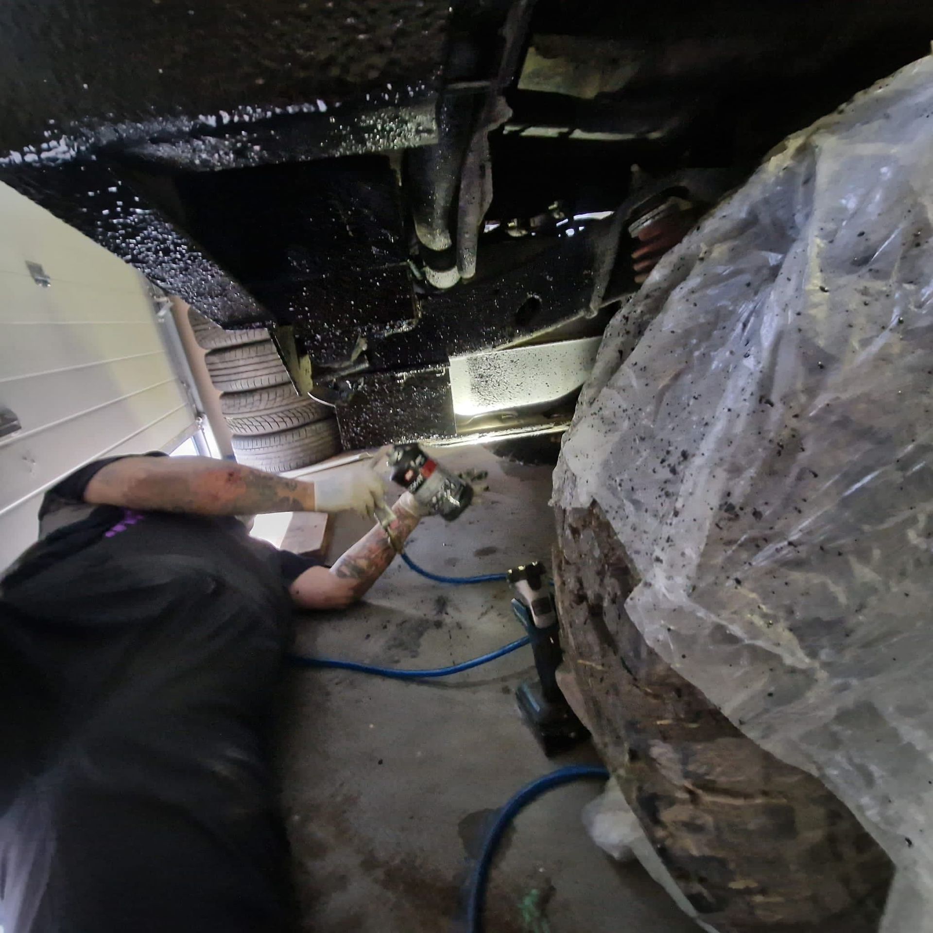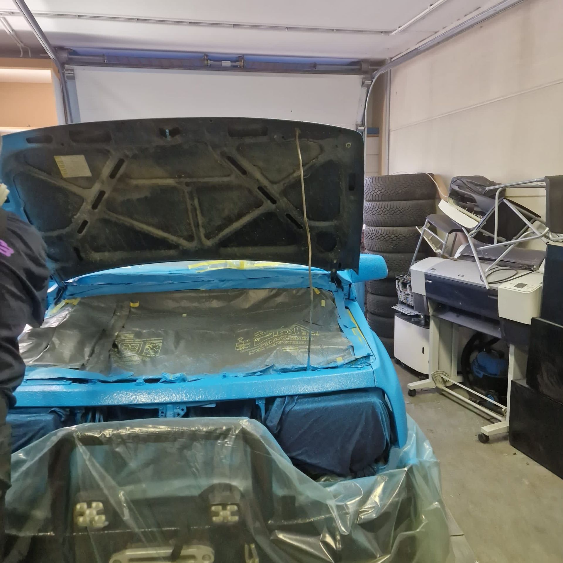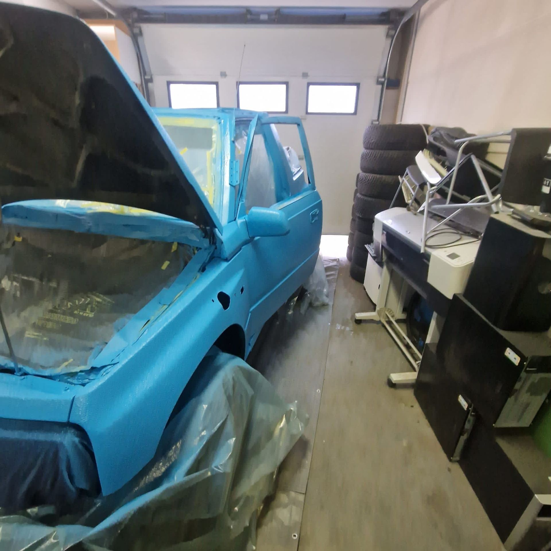 De blauwe truck bedliner komt bij